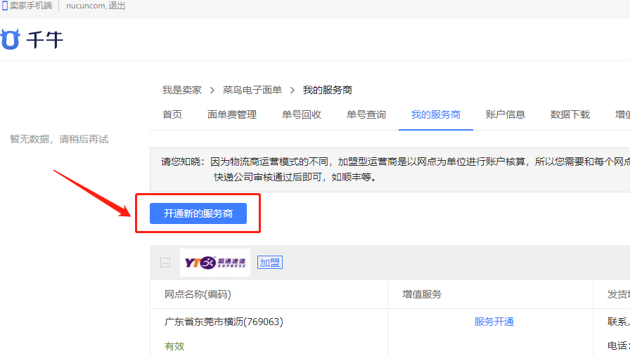 开通新的服务商