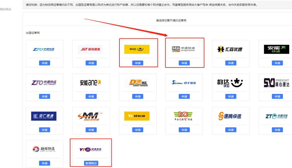 选择快递品牌例如:“申通快递”